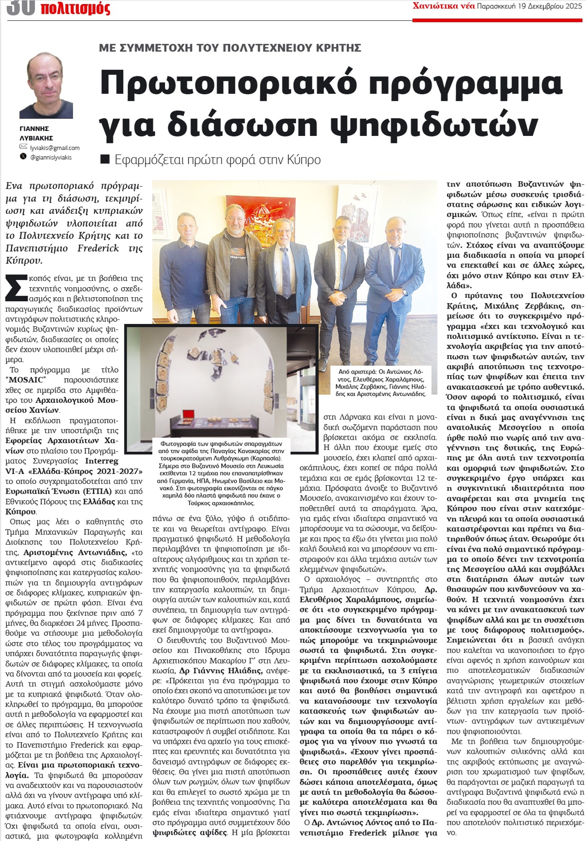 Με επιτυχία διεξήχθη η ημερίδα του έργου στις 18 Δεκεμβρίου 2025 στο αμφιθέατρο του Αρχαιολογικού Μουσείου Χανίων.
