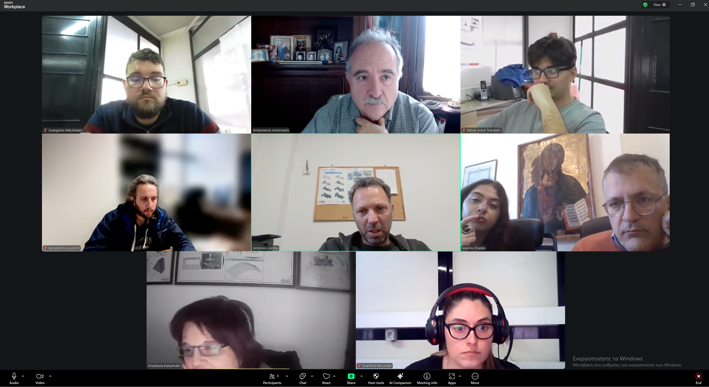 Διαδικτυακή συνάντηση εργασίας των εταίρων με στόχο την αναλυτική παρακολούθηση της προόδου του έργου, τον συντονισμό των επόμενων βημάτων και την επίλυση επιμέρους οργανωτικών, τεχνικών και διαχειριστικών ζητημάτων που συνδέονται με την εξέλιξη των πακέτων εργασίας. Κατά τη διάρκεια της συνάντησης έγινε συνολική αποτίμηση της έως τότε πορείας των δράσεων, με ιδιαίτερη αναφορά στην παραλαβή και ενεργοποίηση του εξοπλισμού, στην ολοκλήρωση των ενεργειών στελέχωσης για τις ανάγκες του έργου και στην επικαιροποίηση των ομάδων εργασίας, ώστε να διαμορφωθεί ένα σαφές και λειτουργικό πλαίσιο υλοποίησης για την επόμενη φάση.